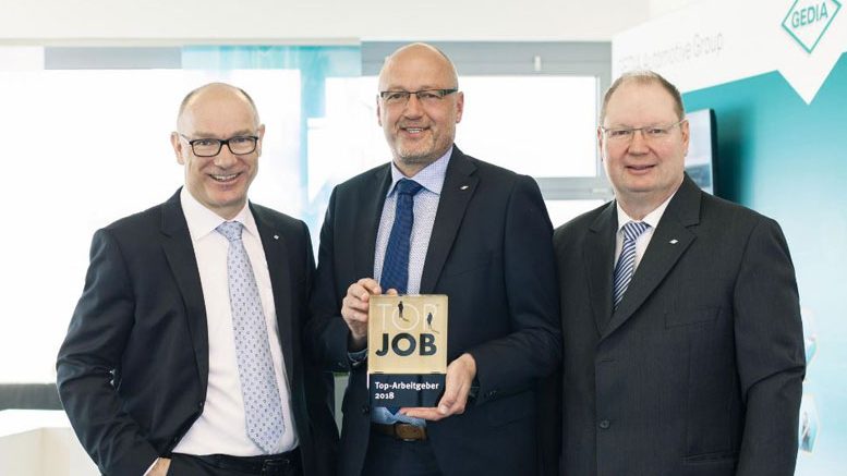 Die GEDIA Automotive Group wurde mit dem „Top Job“-Arbeitgebersiegel ausgezeichnet. Die vom Zentrum für Arbeitgeberattraktivität, zeag GmbH, vergebene Auszeichnung erhalten Unternehmen, die auf bemerkenswerte Art und Weise eine gesunde und leistungsstarke Arbeitsplatzkultur fördern. Die „Top Job“-Analyse ist eine umfassende Mitarbeiter- und Führungskräftebefragung. Darüber hinaus beinhaltet sie mit dem Kulturaudit, eine Wirkungsanalyse der Personalinstrumente.