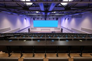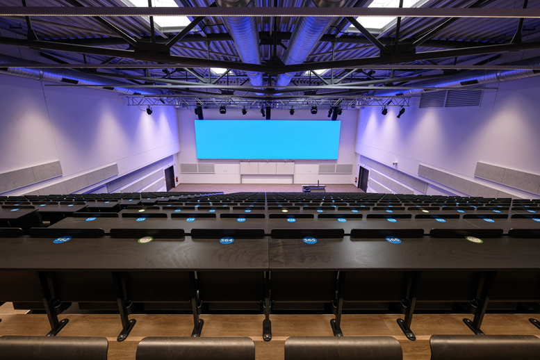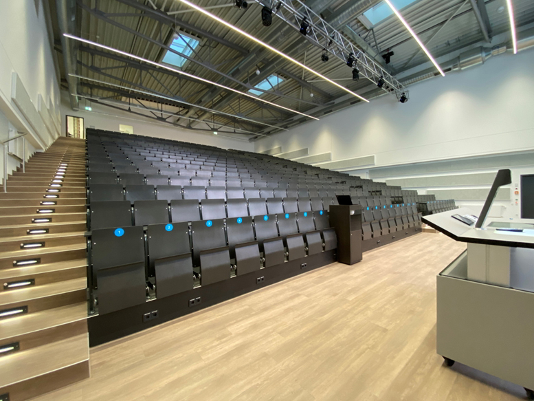 Das neue Hörsaal-Zentrum umfasst einen großen Hörsaal für 594 Personen, zwei kleinere Hörsäle für jeweils 202 Personen und sieben Seminarräume für 41 bis 79 Personen.