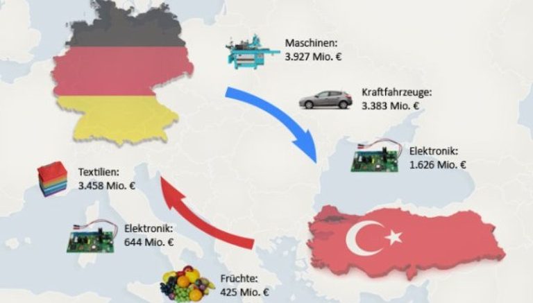 Auch für die Türkei selbst ist Deutschland ein wichtiger Handelspartner. Waren im Wert von fast 14 Milliarden Euro würden derzeit nach Deutschland exportiert, so viel wie in kein anderes Land, betont Jäger: „Auch die Einfuhren aus Deutschland sind bezogen auf die gesamte türkische Wirtschaftsleistung beträchtlich. Hinzu kommt, dass die Ein- und Ausfuhren zwischen Deutschland und der Türkei seit 2000 stark zugelegt haben.“ Am meisten würden „Kraftwagen, Fahrzeuge und Fahrzeugteile“ (11,5 Prozent) sowie „Maschinen und mechanische Erzeugnisse“ (8,6 Prozent) von der Türkei nach Deutschland ausgeführt, gefolgt von „Kleidung aus Gewirken oder Gestricken“ (6,4 Prozent). Bei den deutschen Exporten in die Türkei stehe mit einem Anteil von 11,6 Prozent der Bereich „Maschinen und mechanische Erzeugnisse“ an zweiter Stelle. Das wiederum sei ein wichtiger Zweig für Unternehmen aus dem IHK-Bezirk Siegen.