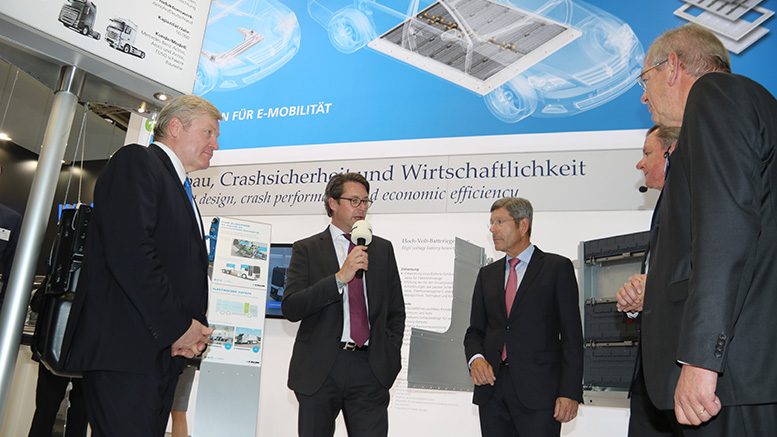 „Die gesamte Nutzfahrzeugindustrie ist im Aufbruch. Alle Hersteller gehen neue Wege, um den Transport der Zukunft zu gestalten“, sagte VDA-Präsident Bernhard Mattes. Das Highlight auf dem KIRCHHOFF Automotive Messestand bildet ein skalierbares Batteriegehäuse in Leichtbauweise (Kombination aus Stahl und Aluminium) für elektrisch angetriebene Fahrzeuge. Zu den Besonderheiten und Vorteilen dieses Batteriegehäuses zählen ein kostenoptimiertes Design, Korrosions- und Unterbodenschutz, ein integriertes Kühlsystem und ein optimiertes Crashverhalten. Das innovative und wirtschaftliche Leichtbau-Konzept sorgt für die sichere Unterbringung von Hochvolt-Batteriemodulen. Das Gehäusedesign ist skalierbar und damit in unterschiedlichen Fahrzeugmodellen und Derivaten einsetzbar.