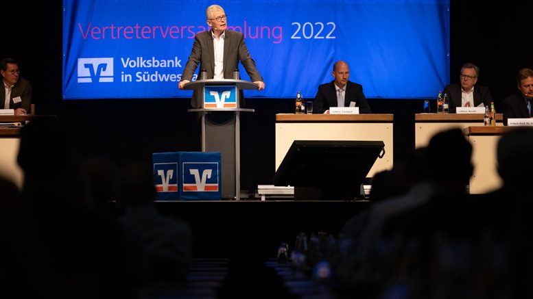 Die Volksbank in Südwestfalen ist erfolgreich in das Geschäftsjahr 2022 gestartet. „Aufgrund des bisherigen Geschäftsverlaufs halten wir an unseren Wachstumszielen für 2022 fest“, sagte Vorstandssprecher Karl Michael Dommes in seiner Rede. Der Zinsüberschuss werde sich voraussichtlich in einer Größenordnung von rund 62 Millionen Euro einpendeln. Bei zu erwartenden tarifbedingten Steigerungen der Personalkosten und aufgrund von erhöhten Verwaltungsaufwendungen, die vor allem durch Investitionen in das Geschäftsstellennetz bedingt sind, erwartet der Vorstand einen Jahresüberschuss leicht unter dem Niveau des Jahres 2021, so Dommes in der Vertreterversammlung. Dies erfolge vorbehaltlich der weiteren Entwicklungen im Ukraine-Krieg.