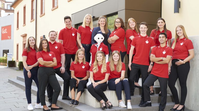 Einen solchen Azubi hatte Laura Wilhelm, Ausbildungsleiterin bei der Sparkasse Siegen, noch nie unter den jungen Leuten, die sie jährlich am ersten August begrüßt. Mitten unter den vierzehn neuen Auszubildenden, die jetzt in ihre gemeinsame Zeit bei der Sparkasse Siegen starten, fand sich ein kleiner Roboter, für das gemeinsame Gruppenfoto ebenfalls im roten Sparkassenshirt. „Hier muss aber niemand befürchten, von einem Roboter ersetzt zu werden“, erklärte Laura Wilhelm schmunzelnd bei der Begrüßung. „Er kommt zu uns, um zu lernen“. Der Roboter mit dem sympathischen Gesicht beginnt in Kürze nämlich ebenfalls seine Ausbildung bei der Sparkasse Siegen. Was er lernen soll und wie er künftig in der Sparkasse eingesetzt werden kann, das könnten einige seiner „Mit-Azubis“ begleiten in einem gemeinsamen Projekt mit der Universität Siegen. Für das schon traditionelle alljährliche „Klassenfoto“ der Sparkassen-„Azubis“ an ihrem ersten Ausbildungstag besuchten die Vierzehn jetzt den „halben“ Kollegen an der heimischen Universität. „Robbie wird allerdings hier an der Uni bleiben, zu uns kommt voraussichtlich ab Herbst ein Verwandter von ihm“, so Laura Wilhelm weiter.