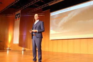 Volles Haus hieß es am Montagabend bei „Volksbank trifft…“ im Siegener Gläsersaal. Vor rund 600 Gästen präsentierte Wetterexperte Sven Plöger in seiner humorvollen und kurzweiligen Art die wichtigsten Klimafakten. Volksbank-Vorstand Jens Brinkmann betonte in seiner Begrüßungsansprache, dass es gut sei, mit Sven Plöger einen studierten Experten zum Thema vor Ort zu haben. Frage er sich doch – ebenso wie viele andere auch –, ob wir es bei den zwei heißen Sommern bereits mit Klima und dem Klimawandel zu tun haben könnten. Plöger, der bereits seit 1999 vor der Kamera steht und den Fernsehzuschauern das Wetter erklärt, kann dies nachempfinden und auch bestätigen. „Das Klima ist haptisch erlebbar geworden“, so der Diplom-Meteorologe. Wer Angst hatte, es folge nun ein langer Vortrag voller ermüdender Tabellen und Fachausdrücken erlebte stattdessen einen Fachmann, der es verstand, das Publikum von der ersten bis zur letzten Minute zu fesseln. Bereits 2002 hielt er seine ersten Vorträge über Wetter und Klima und mittlerweile ist daraus ein zweiter beruflicher Schwerpunkt als Redner geworden.