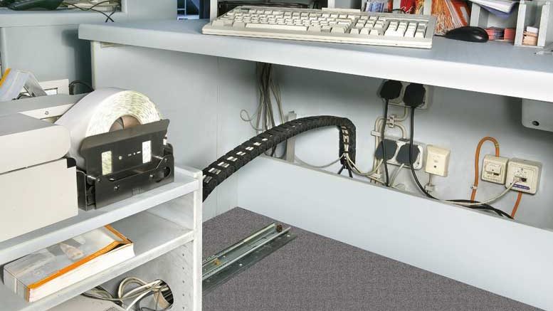 An den Check-in Terminals am Airport Nürnberg sind Computer und Drucker in fahrbaren Wagen untergebracht. Entsprechend laufen Leitungen und Stecker Gefahr, beschädigt oder versehentlich herausgezogen zu werden. Mit Hilfe von EasyTrax haben die Techniker des Flughafens diese Fehlerquelle behoben und die Verfügbarkeit der Computer am Check-in optimiert. Die Energieführungsketten werden an allen 30 Check-in Schaltern des Airports Nürnberg eingesetzt. Sie führen die Kabel zu den Computern und Druckern, die jeweils in einem Wagen untergebracht sind, der im Fußraum der Terminals steht. Dieser Wagen steht bei Nichtbetrieb unter dem Tisch des Check-in Schalters und wird auf Rollen, die in einer Schiene auf dem Boden verlaufen, bei Bedarf hervorgezogen. Die EasyTrax-Energiekette mit einer lichten Innenbreite von 38 Millimetern führt die Kabel dabei sicher und ohne Bodenkontakt. Kabelwirrwarr und sich lösende Stecker beim Verschieben des Wagens sind ausgeschlossen.