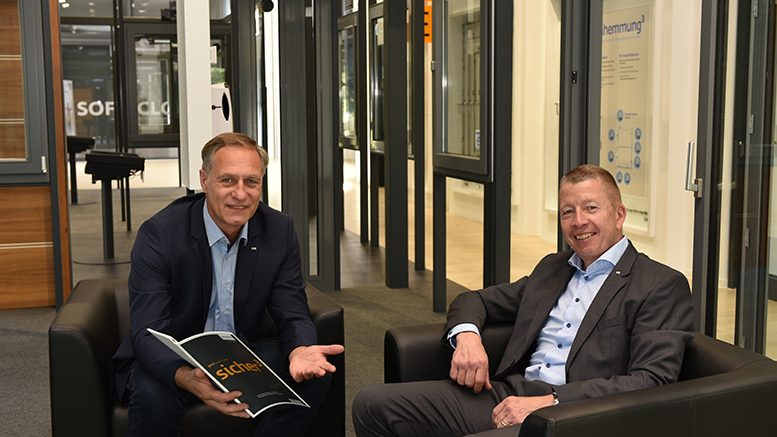 Für Wieland Frank, Geschäftsführender Gesellschafter von SIEGENIA, und KFV-Werksleiter Michael Krüger (links im Bild) stellen die Schließsysteme für Türen von KFV eine wichtige Ergänzung des SIEGENIA-Portfolios dar.