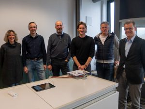 Die Initiatorinnen und Initiatoren des Projekts (v.l.): Kristina Oliveira (Uni Siegen), Florian Kraft (Gesamtschule Freudenberg), Alexander Lisai (Gesamtschule auf dem Schießberg), Christian Klein, Prof. Dr. Martin Gröger (beide Uni Siegen) und Günter Zimmermann (Sparkasse Siegen).
