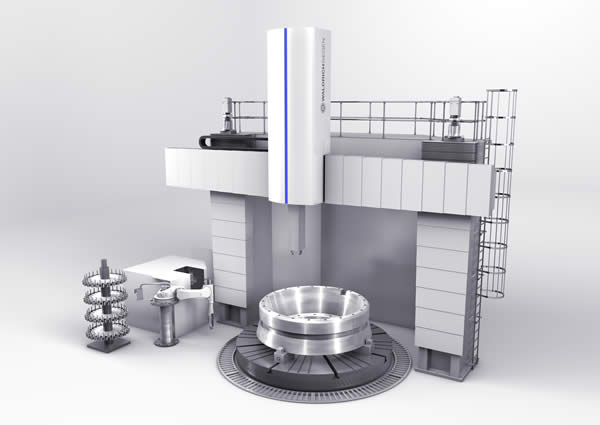Durch den Aufbau eines modularen Maschinenkonzepts mit hydrostatischen Hauptachsen kann die Vertikaldrehmaschine flexibel an das jeweilige Einsatzgebiet angepasst werden. Bearbeitungsdurchmesser bis 12.000 mm, Bearbeitungshöhen bis 10.000 mm, Schieberausfahrlängen bis 4.000 mm, Leistungen an der Planscheibe bis 300 kW und Drehmomente bis 800.000 Nm sind mit der neuen Vertikaldrehmaschine realisierbar. Je nach Auslegung können Werkstücke mit bis zu 500 t Gewicht bearbeitet werden.