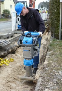 Der Bodenverdichter CR7 wird bei Verdichtungsarbeiten vom klassischen Straßen- und Tiefbau bis hin zum Pflasterbau verwendet.