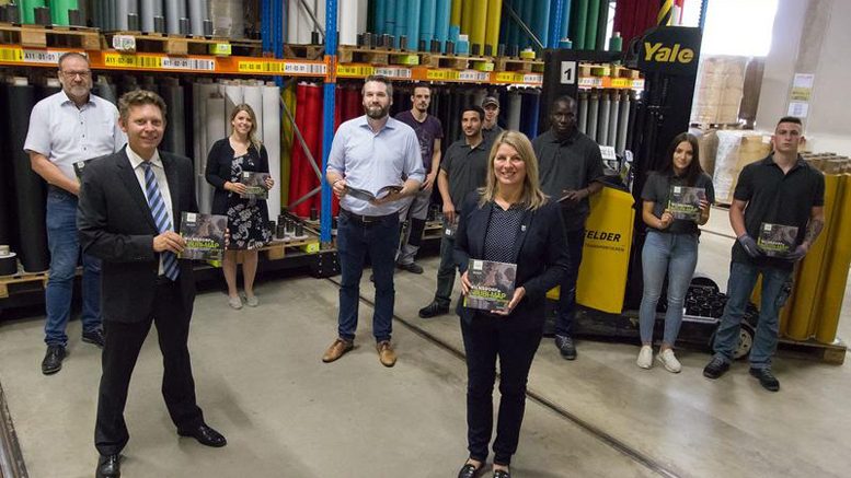 In den Hallen der Firma Krückemeyer präsentiert der Arbeitskreis Wilnsdorfer Unternehmer die neue Auflage der Wilnsdorfer Azubi-Map, im Beisein junger Auszubildender. Die dürfen übrigens dank eines ausgeklügelten Coronaschutzkonzepts den Mindestabstand von 1,50 Meter zueinander unterschreiten.