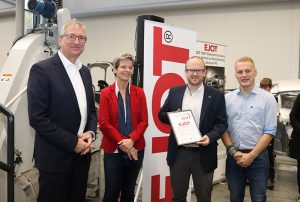 Neben der Verleihung des Dieter-Ulbrich-Preises gab es in diesem Jahr noch eine weitere Auszeichnung. Das Unternehmen „ertragswerkstatt“ in Werdohl hat in diesem Jahr in einer anonymen Umfrage 130 Auszubildende der deutschen EJOT Standorte nach der Ausbildung bei EJOT befragt und die Ausbildungskennzahlen des Unternehmens ausgewertet. Das Ergebnis ist sehr positiv ausgefallen, sodass EJOT das Gütesiegel „Ausgezeichneter Ausbildungsbetrieb“ verliehen wurde.