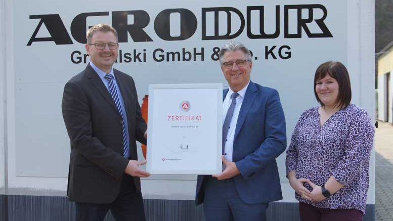 Die Agrodur Grosalski GmbH & Co. KG ist einer von drei Betrieben, die die Agentur für Arbeit im Rahmen der Woche der Ausbildung in diesem Jahr ausgezeichnet hat. Die beiden weiteren Zertifikatsträger sind die Firmen dy-pack Verpackungen Gustav Dyckerhoff GmbH in Wenden und Steuber Elektrotechnik GmbH in Siegen.