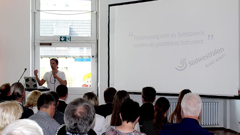 Auch die zweite Impulsveranstaltung unter der Überschrift „Kompetenznetz Digitale Bildung“ war ein voller Erfolg. Mit über 80 Gästen aus den Bereichen Wirtschaft, Gesellschaft und Bildung war das „Zukunftslab“ der Südwestfalen Agentur wieder gut gefüllt. Manuel Dolderer aus Berlin, Mitbegründer und Präsident der Code University of Applied Sciences, der ersten privaten Hochschule für Softwareentwickler in Deutschland, erläuterte das Konzept hinter der Berliner Hochschule, dessen Fundament die intrinsische Motivation ist. Praxisnähe, Team-Arbeit und ein individueller Studienplan sollen die Neugier der Studierenden aufrecht erhalten, um sich dem schnellen Wandel in der digitalen Welt anzupassen. Dolderer unterstützte die Grundhaltung der Südwestfalen-Bewerbung: „Digitalisierung ist nicht Selbstzweck, sondern ein gestaltbares Instrument“.